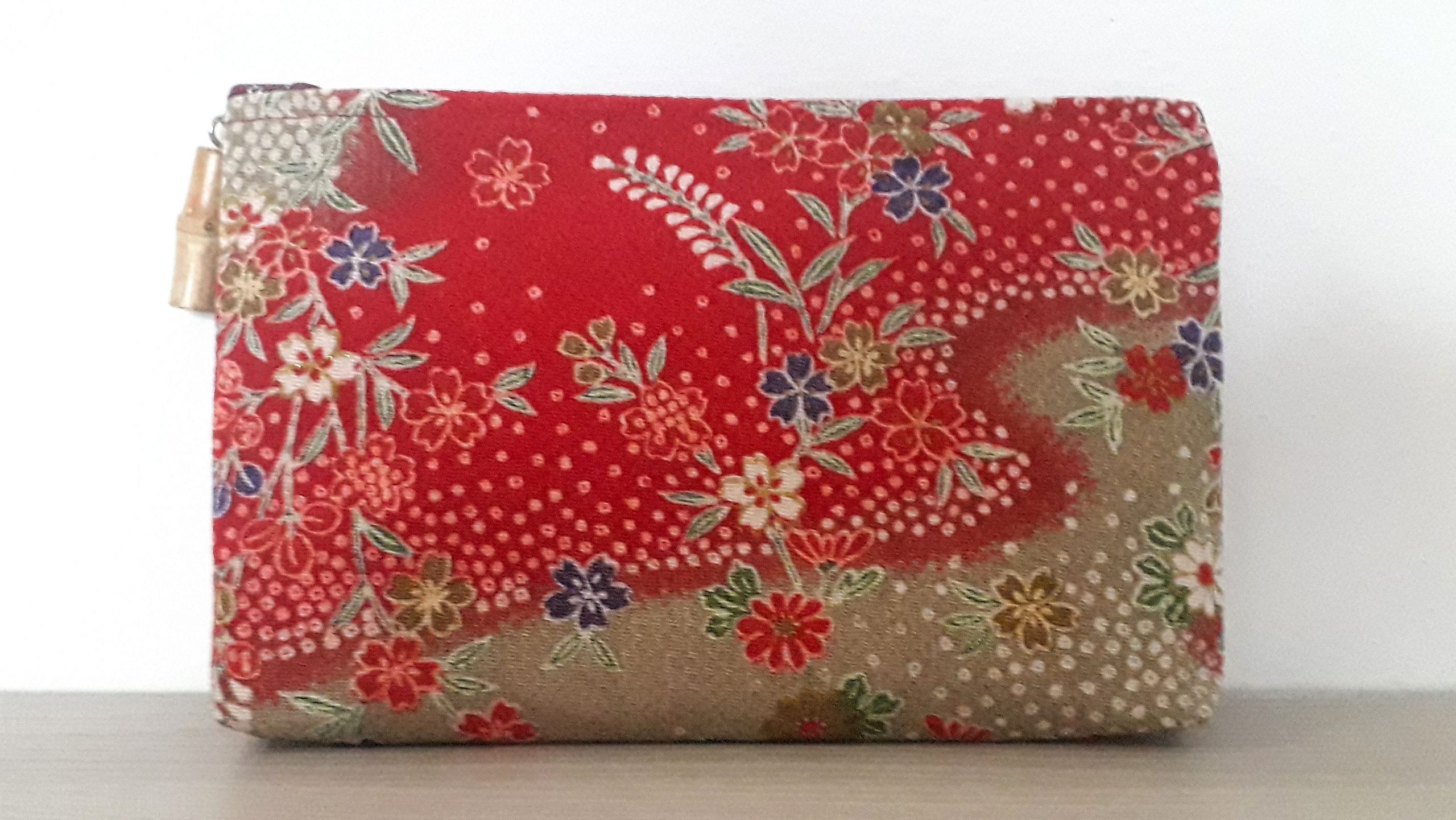 Pochette, o bustina porta tutto, in chirimene rayoin, stoffa giapponese con cui vengono fatti i kimono, o molto utilizzata per altri oggetti.