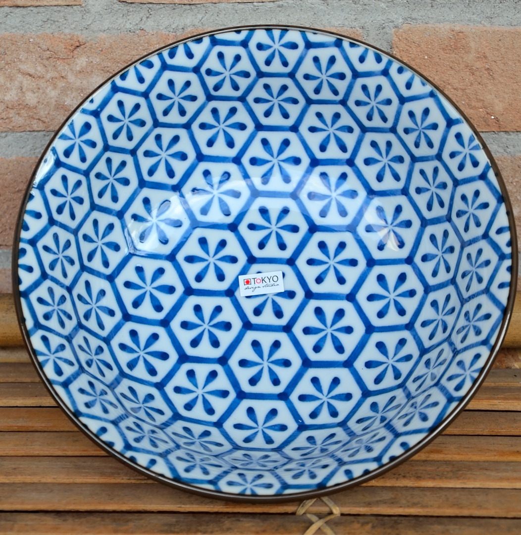 Ciotola della linea Tokyo Design in colore bianco azzurro, con disegni geometrici.
